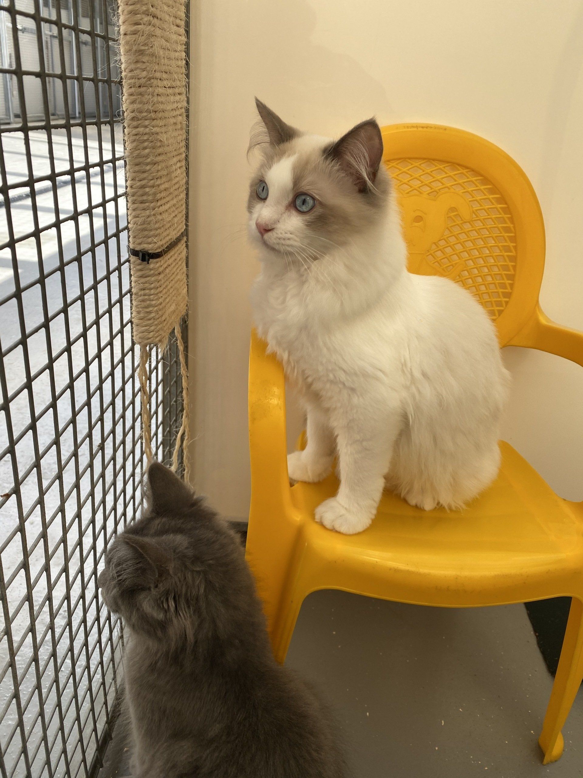 Each pen has a scratch board, chair, stool and toys but you are welcome to bring your own.