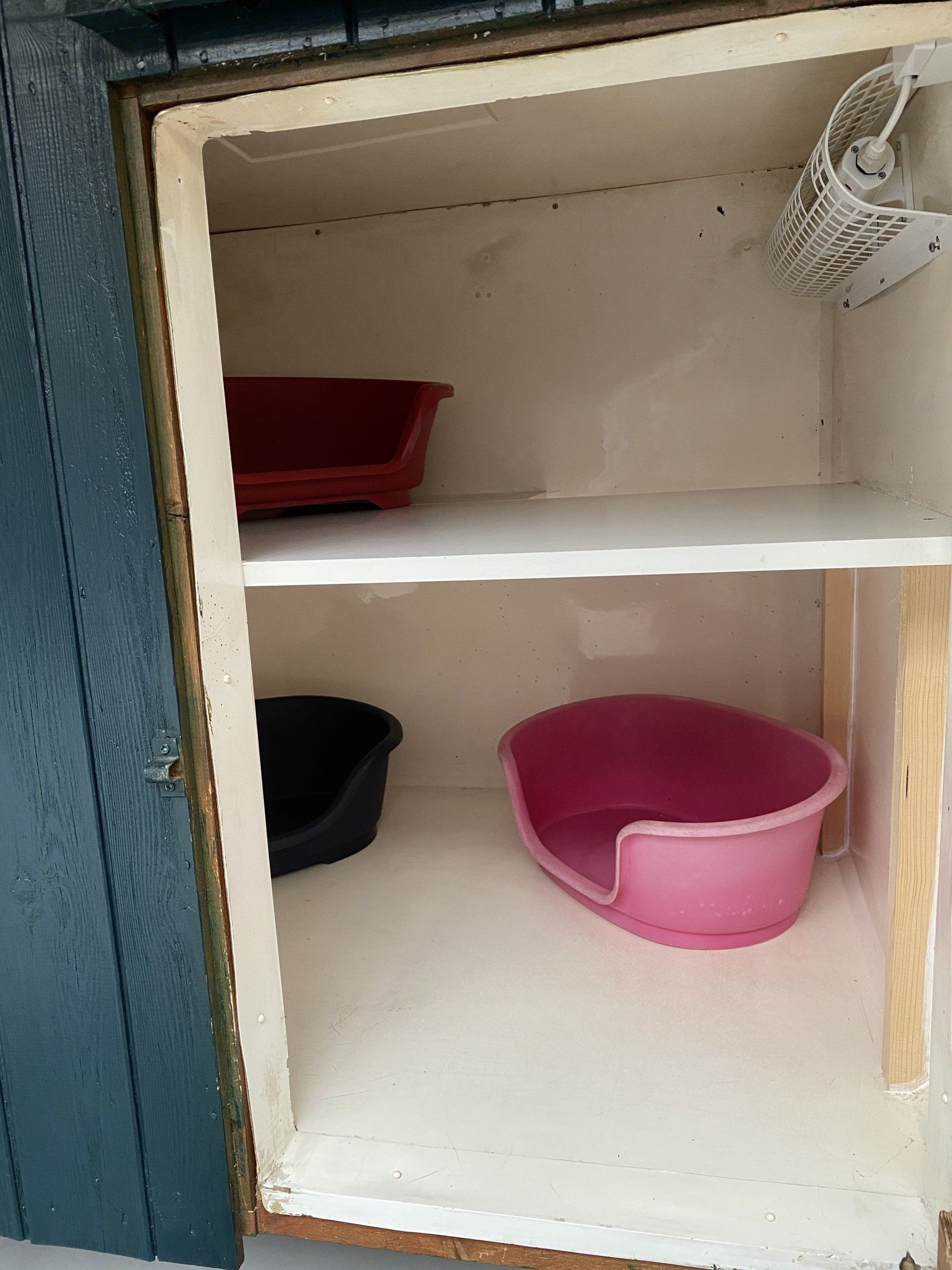 Litter trays, litter and bowls are provided by us as standard and are all fully cleaned throughout the day. All toys, scratch poles etc are fully disinfected as soon at any cat has vacated that pen.