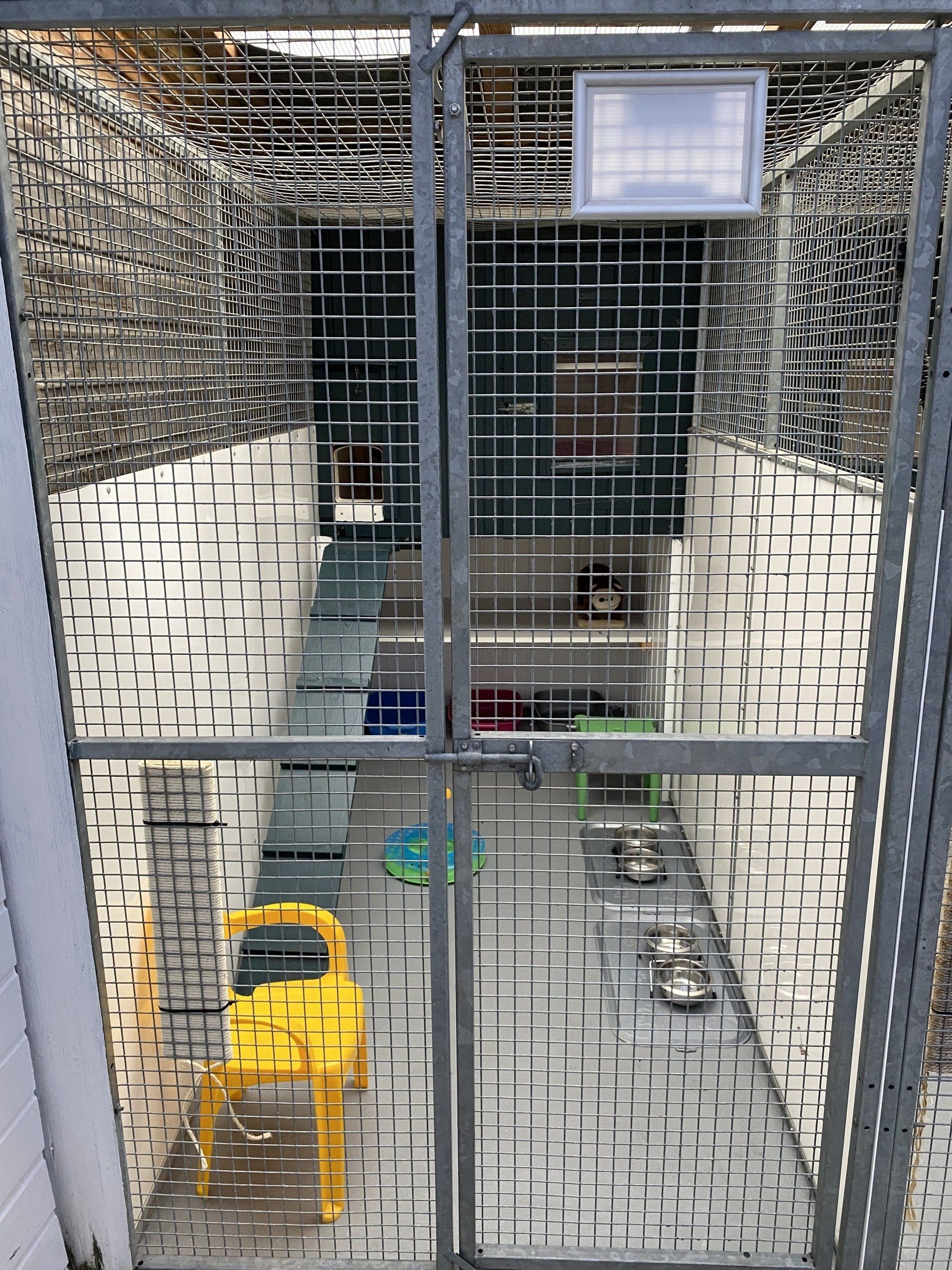Our larger family pens can accommodate up to four cats from the same family. Each pen has a thermostatically controlled heating tube with safety guard.